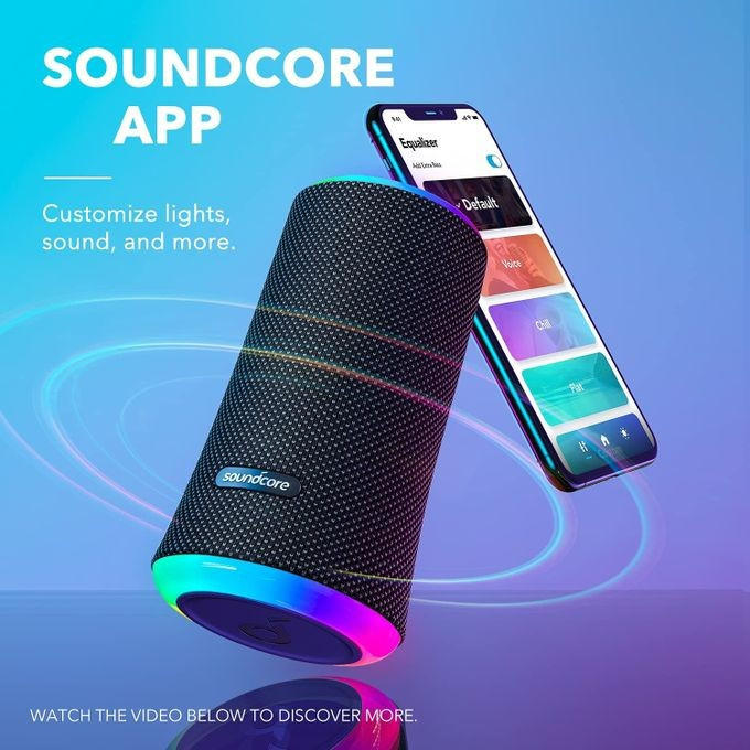 | IPX7 Waterproof Protection 360° Sound for Backyard and Beach Party 20W Wireless Speaker with PartyCast, EQ Adjustment 12-Hour Playtime Black | Anker Soundcore Flare 2 Type C charging cable User Friendly guide |