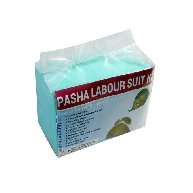 4 pairs of surgical gloves 1 bottle of jik 250mls 2 surgical blade Gauze 1 piece of soap 1 cord tie Child growth card 2 delivery sheets 2M each 1 pack of maternity pads(12) |