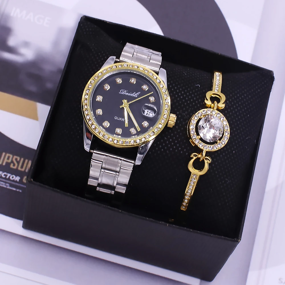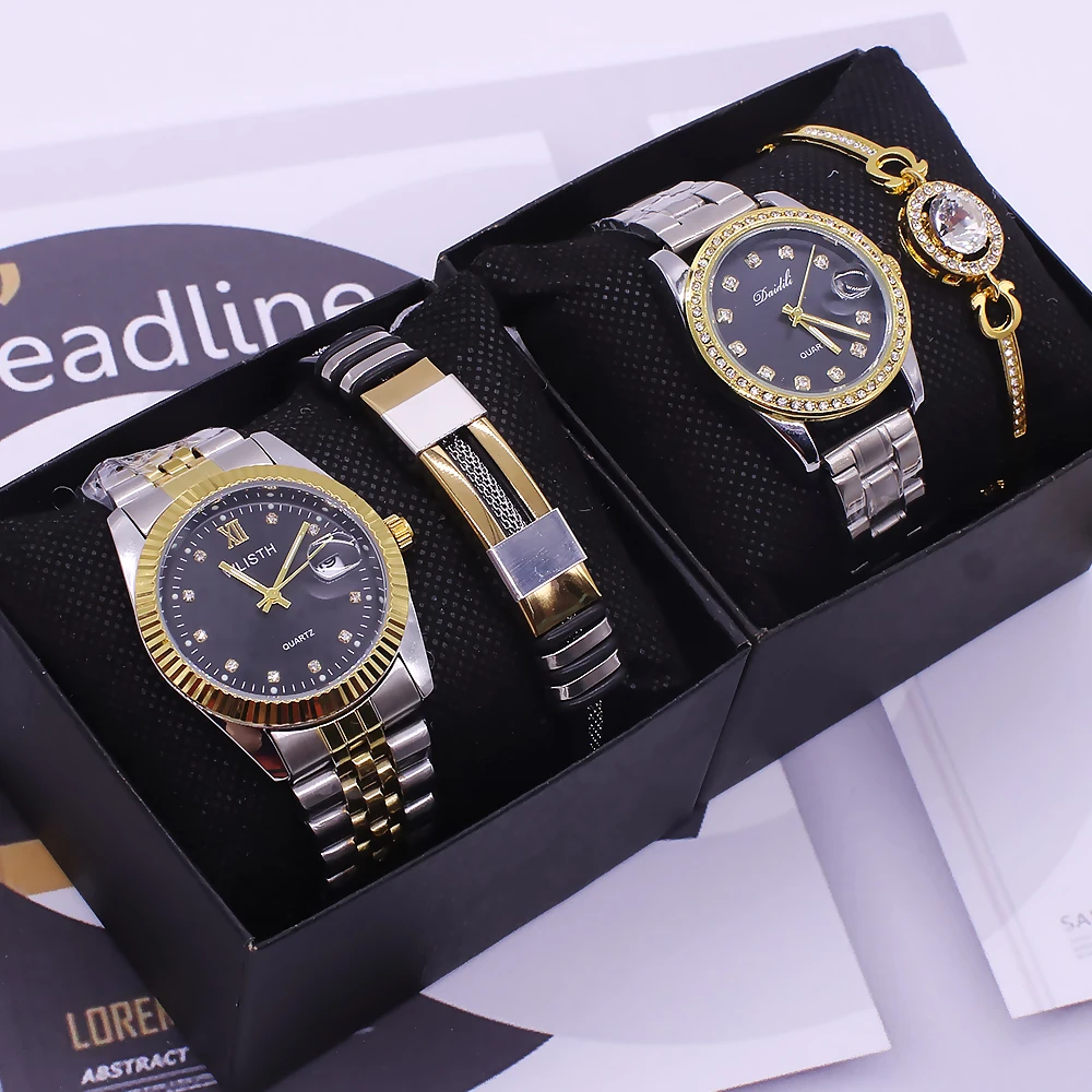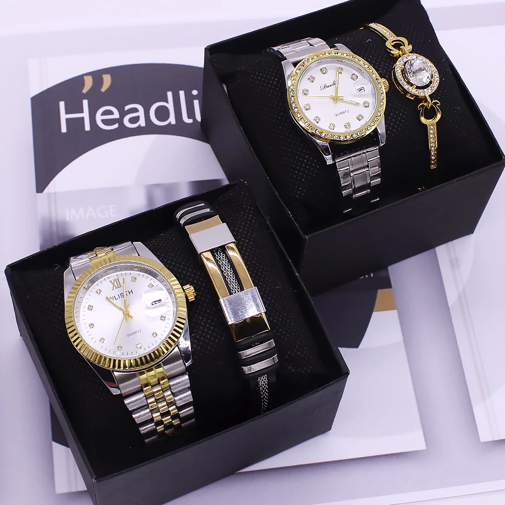 Celebrate love, style, and togetherness with this Couple Watch Bracelet Suit Box, a beautifully crafted gift set designed for couples who value timeless fashion. This elegant watch and bracelet set combines precision quartz timekeeping with stylish alloy design, making it the perfect present for anniversaries, birthdays, Valentine’s Day, engagements, or simply to show your affection.