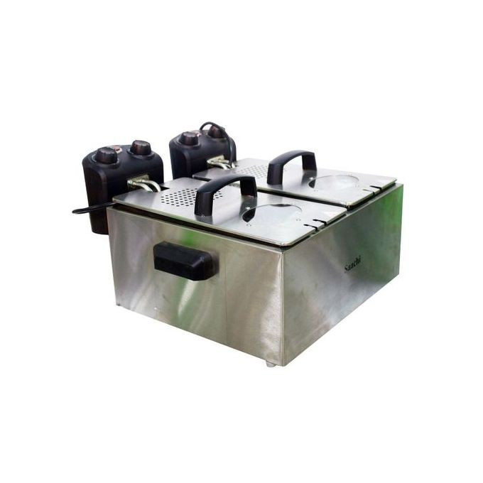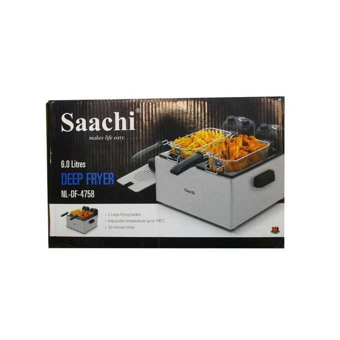 2 Large frying basket Adjustable temperature up to 190°C Power: 2000W×2 30 minutes timer each | Saachi Stainless Steel Electric Deep Fryer - 6.0L |