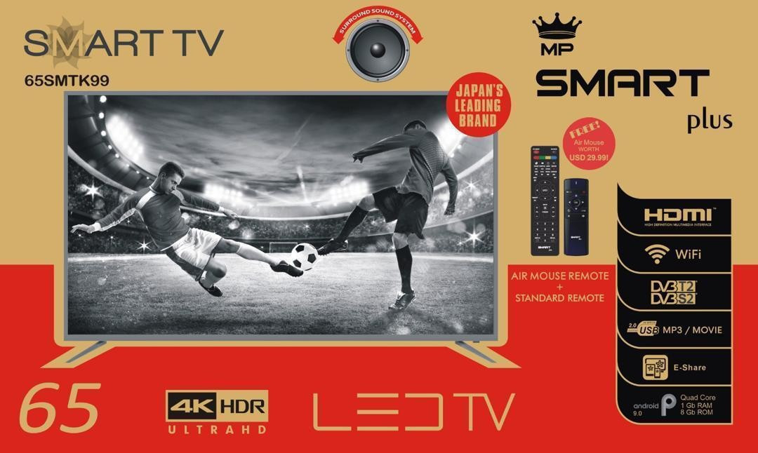 Japan's Leading Brand Digital inbuilt free channels Brand: Smart Plus YouTube/ Netflix Smart Apps TV USB, HDMI Ports High Contrast Ratio Color: Black | User manual Remote Smartplus 65" Smart Android, with Bluetooth |