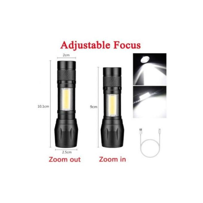 Product Line: USB Rechargeable Zoomable Aluminum Flashlight - Black Size (L x W x H cm): 10*3.5*4 Weight (kg): 0.2 Color: Black Main Material: Aluminum |