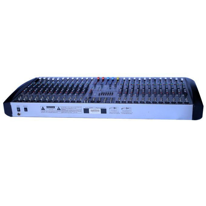 The MGP24X 24-Channel Analog Mixing Console with Effects from Yamaha is a 24-track analog mixer with digital control and features 16 D-Pre microphone pre-amps, 24 line inputs, 6 auxiliary inputs, and 2 effects sends. It is designed for use in live sound environments, including clubs and houses of worship.