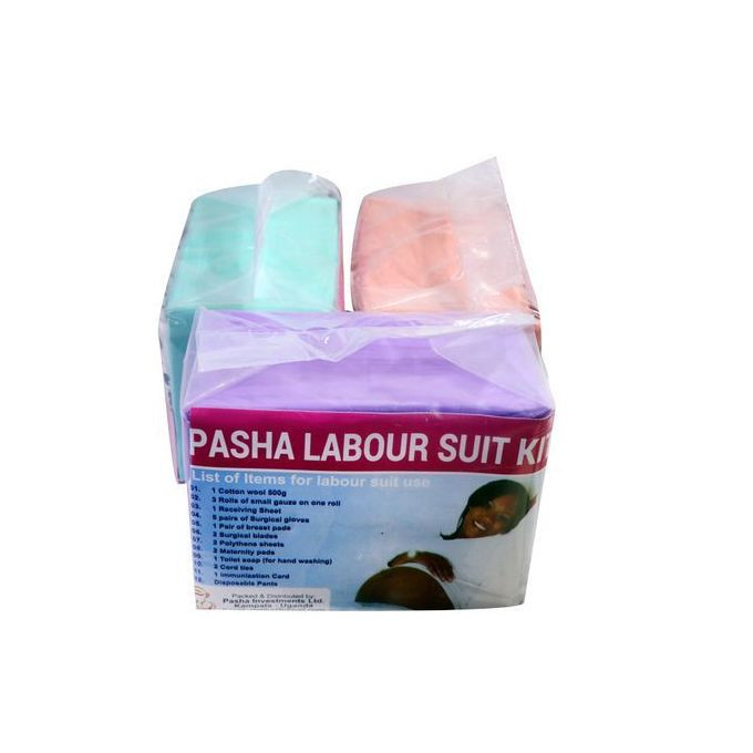 4 pairs of surgical gloves 1 bottle of jik 250mls 2 surgical blade Gauze 1 piece of soap 1 cord tie Child growth card 2 delivery sheets 2M each 1 pack of maternity pads(12) |