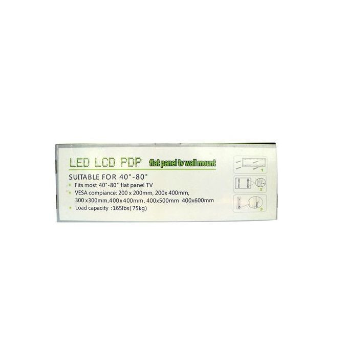 40" - 80" Wall Mount has the ability to support a TV of different weight. It is easy to install and made from durable material so that it will last you for a long time. When you purchase a LED/LCD/plasma TV, it's important you take good care of this expensive gadget properly. They are often lightweight with flat panels which make it possible for them to be mounted on the wall. What you need to mount these TVs on the wall is a strong and solid steel wall bracket that is very reliable.